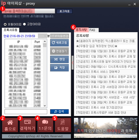 프록시 고정IP를 결제시마다 IP연장 수량만큼 무료 IP교체권(유효기간 3일)이 제공됩니다.
